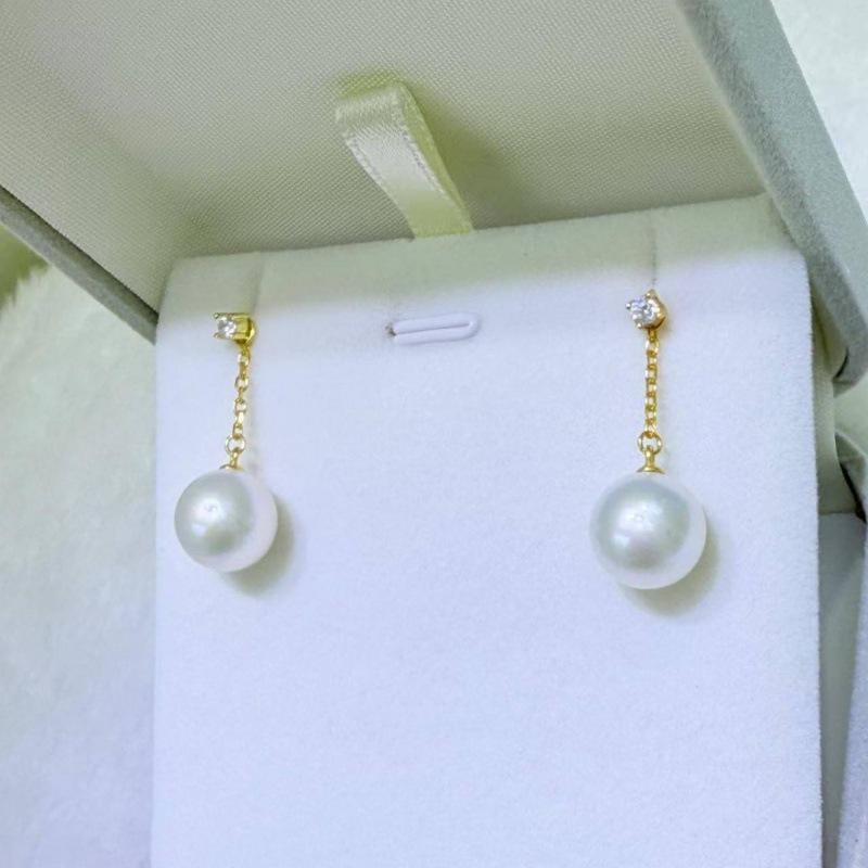 Exquisitos Pendientes Colgantes de Perlas de Agua Dulce de Alta Gama de 10-11 mm, Versátiles, Redondos, Casi Impecables, Dos Gotas para las Orejas, Accesorio