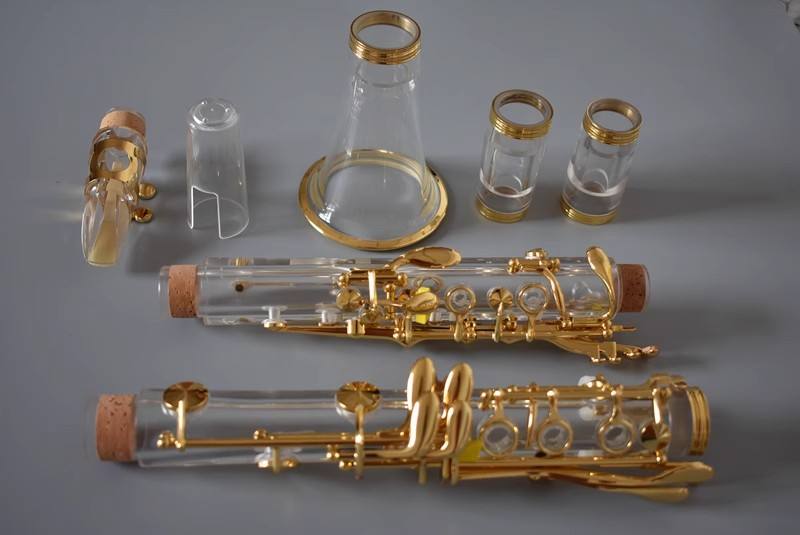Clarinete Si bemol 'Crystal Symphony' de alta gama, exquisito, tubo transparente con llaves doradas y bello timbre