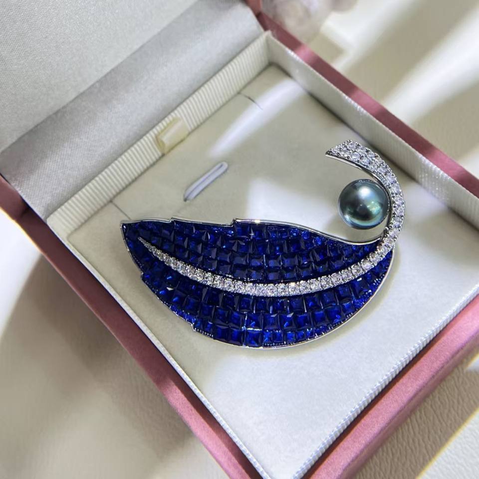 Broche de Hoja de Diamante de Agua de Lujo Ligero y Exquisito, Diseño de Flor de Pecho a la Moda, Pin de Nicho para Mujer