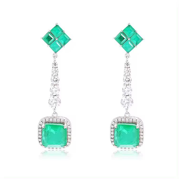 Exquisitos pendientes colgantes de Esmeralda simulados cuadrados de plata 925 de lujo, joyería colgante de moda