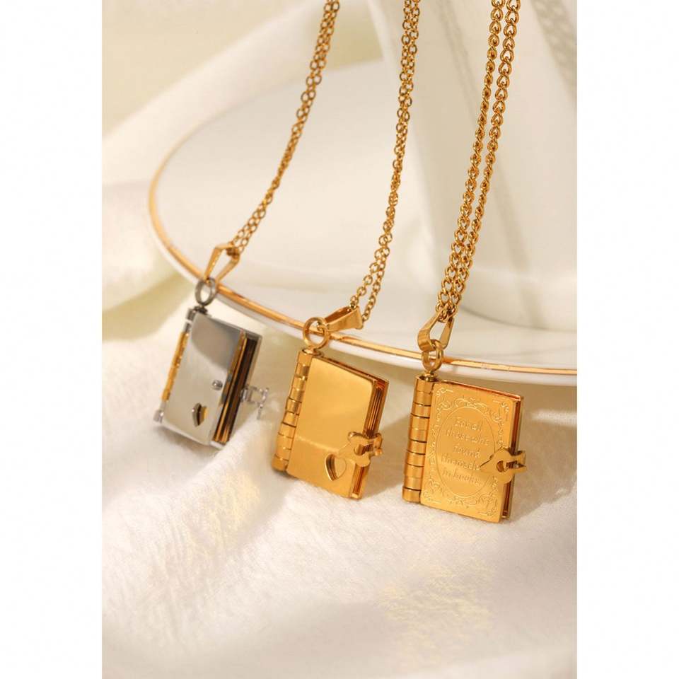 Exquisitos Collares de Cadena de Acero Inoxidable con Colgante Solitario de Libro, Joyería de Moda Impermeable Bañada en Oro