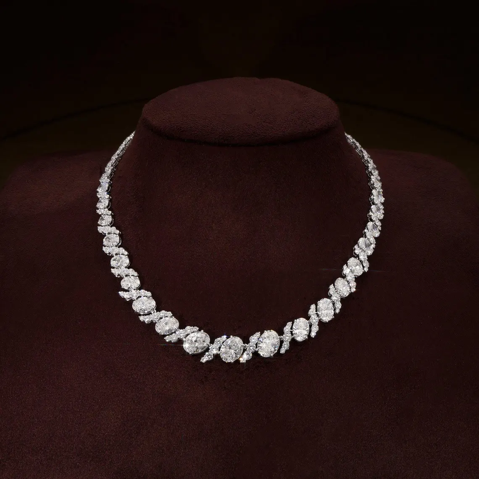 Collar de tenis con racimo de flores, diamantes cultivados en laboratorio ovalados y redondos, collar de oro macizo de 14K y 18K, joyería de lujo para boda, regalo para mujer