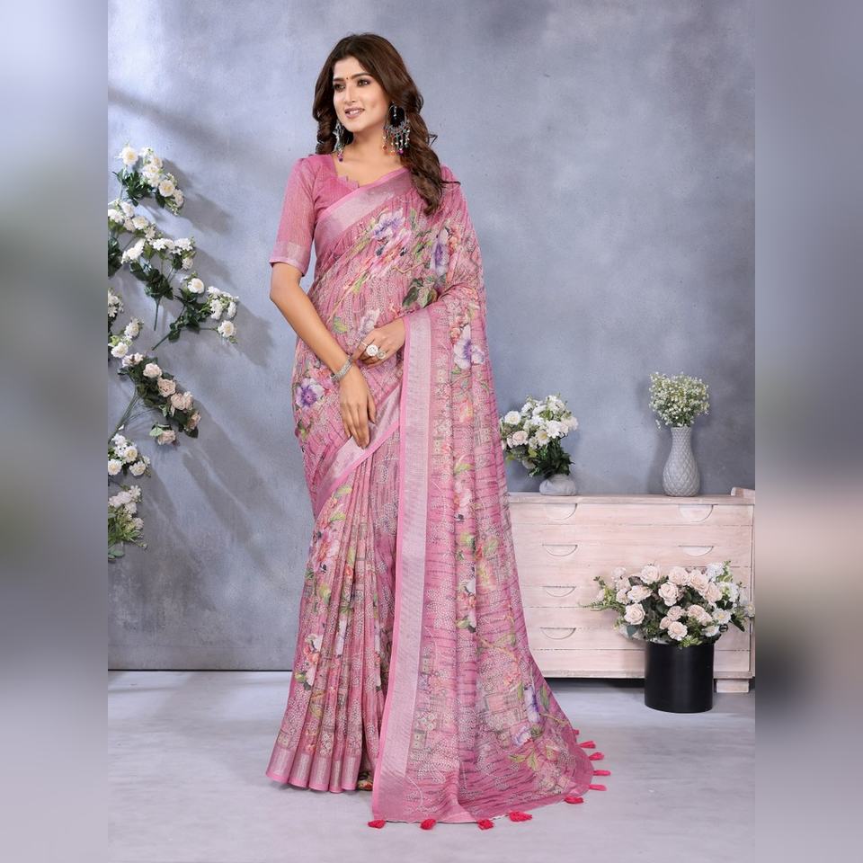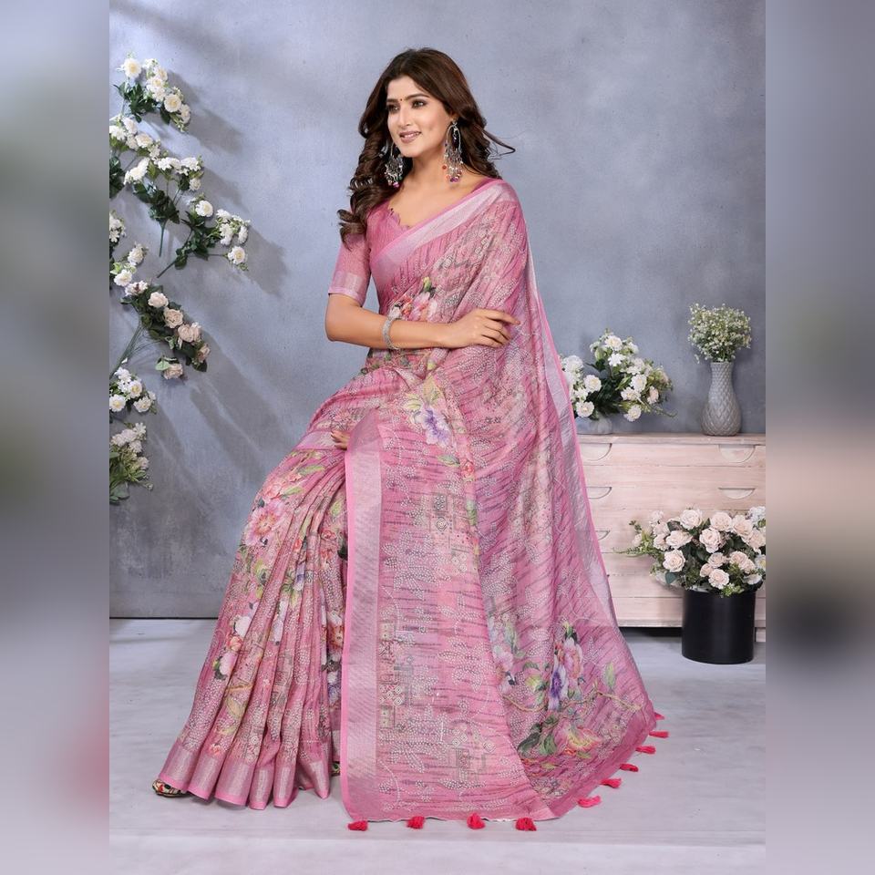 Exquisito Sari Estampado Floral Rosa GG-426, Venta al por Mayor, Estilo Tradicional, Opción de Envoltura Tradicional que Agrega Sofisticación