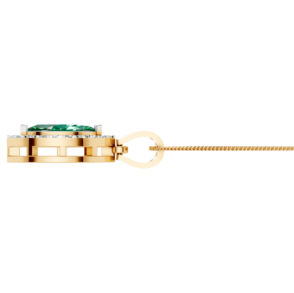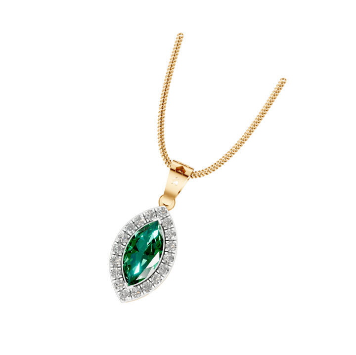 Style:Marquise Shape Emerald Gemstone Pendant with Natural Diamonds