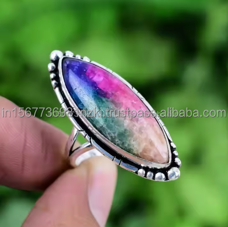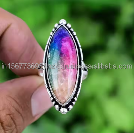 Anillo de Plata de Ley 925 Rainbow Solar Cuarzo