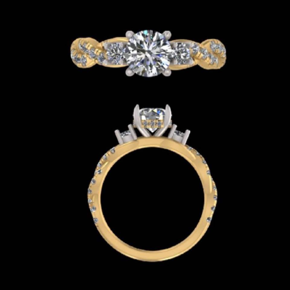 Exquisito Anillo de Compromiso con Diamante de Corte Redondo, Banda Trenzada con Pavé, Chapado en Oro de Dos Tonos, Certificado IGI, Anillo de Lujo para Novia