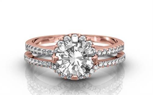 Exquisito Anillo de Hombro con Corte Redondo y Banda Coordinada, Diamante Cultivado en Laboratorio de 1.00 Ct en Oro Amarillo, Blanco, Rosa y Platino de 18K