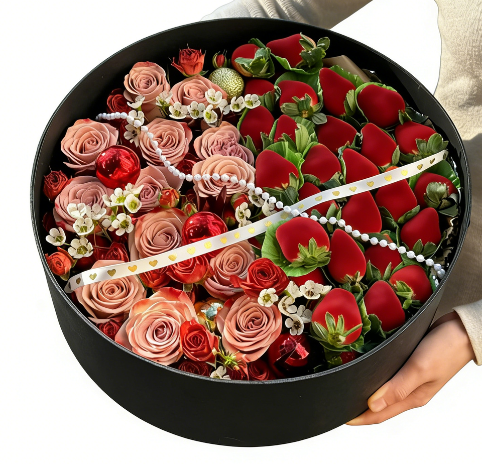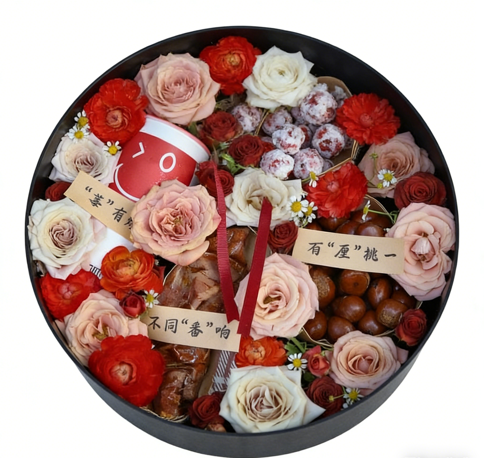 Exquisita Caja de Regalo Redonda de Chocolate con Flores, Caja Rígida Romántica para el Día de la Madre con Laminado Mate, Etiqueta Personalizable