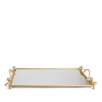 Exquisita Bandeja Redonda Dorada con Espejo, Borde Floral de Filigrana, Bandeja Decorativa de Metal para Tocador, Bandeja de Lujo para Exhibición de Pasteles, Organizador de Perfumes