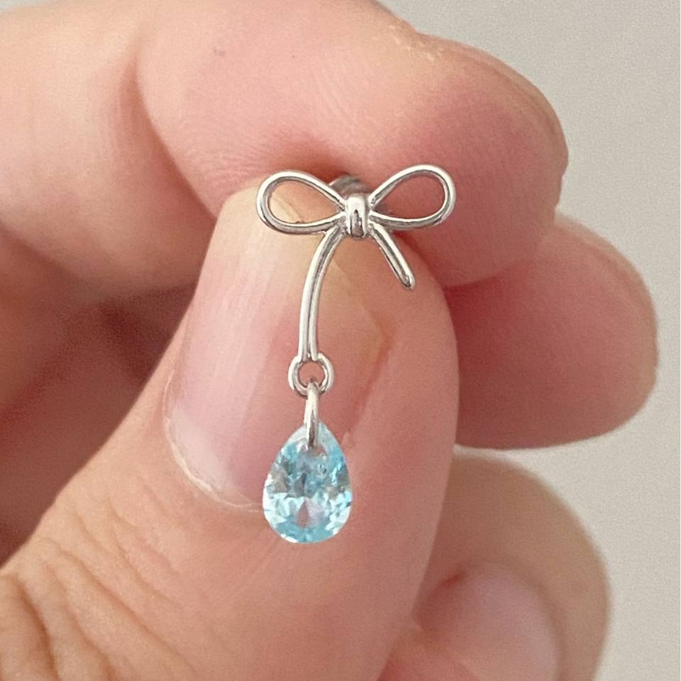Exquisitos Pendientes Colgantes de Plata Pura S925 con Diseño de Lazo y Gota de Agua, con Circonitas Rosas y Azules, Diseño Elegante y Exclusivo