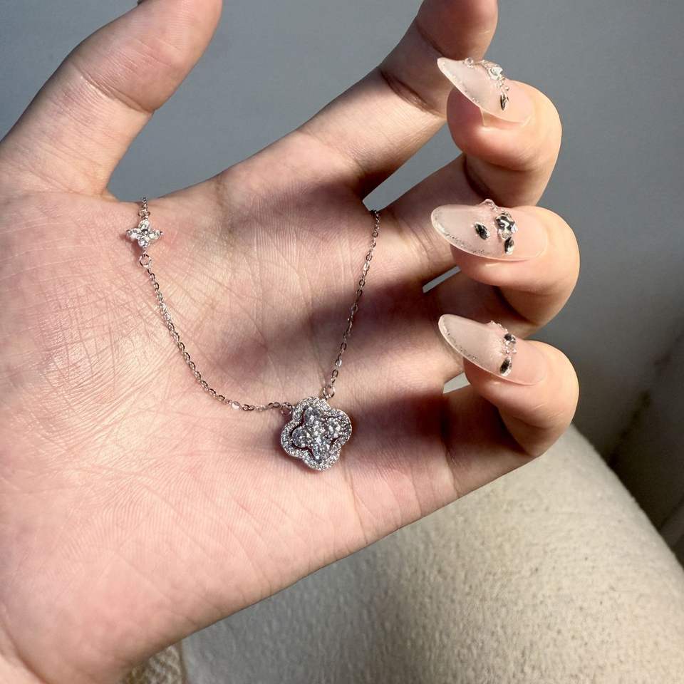 Exquisito Collar de Plata de Ley S925 con Colgante de Flor de Diamantes Brillantes, Gargantilla de Oro de Lujo de Alta Gama, Flores Dulces de Nicho