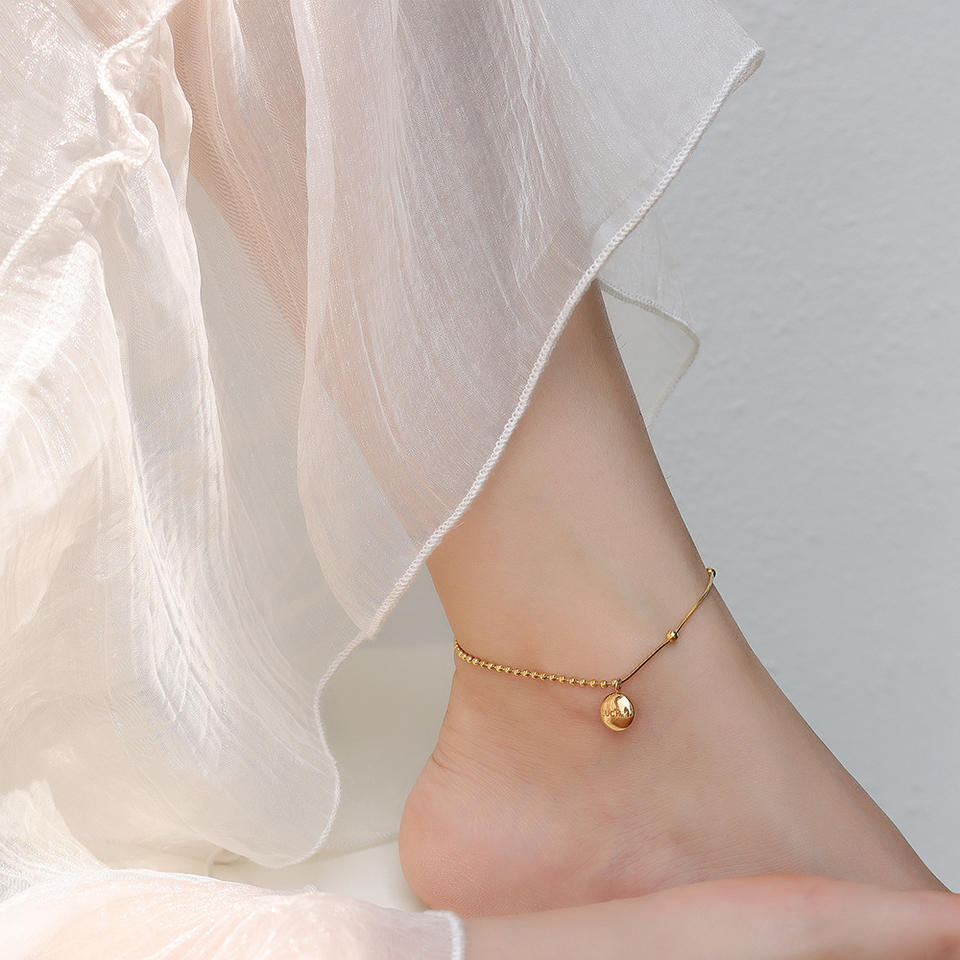 Exquisita tobillera de serpiente redonda envuelta en cuentas de semillas con cuentas de oro de buena suerte 18K joyería de pie de acero de titanio en tonos dorados personalizada