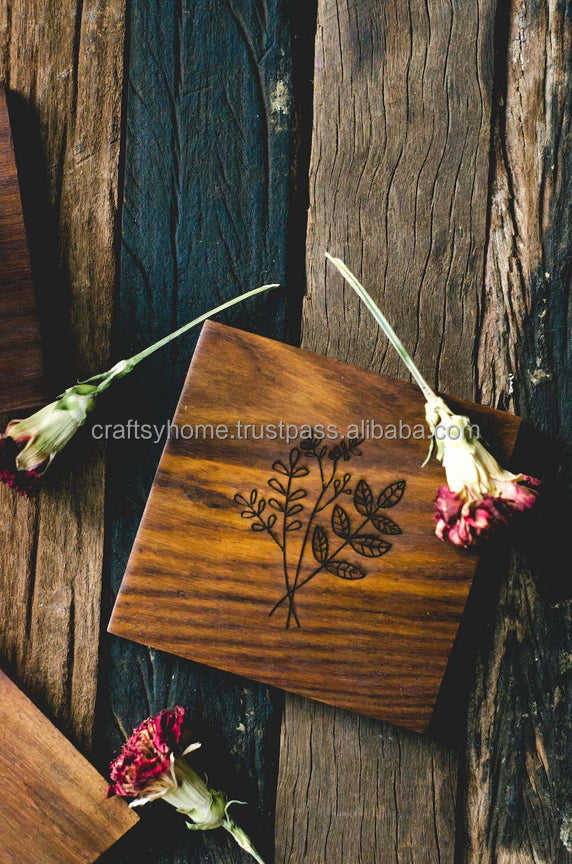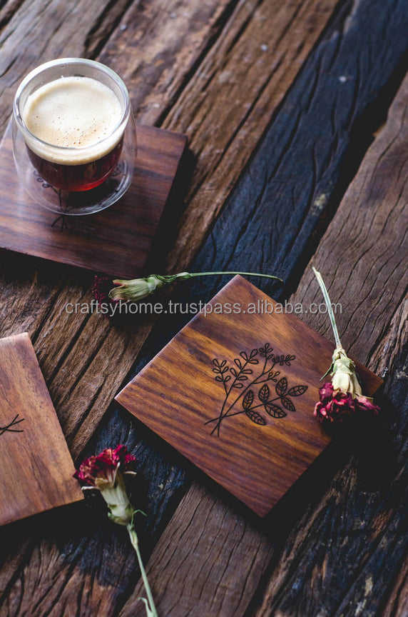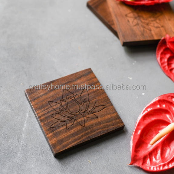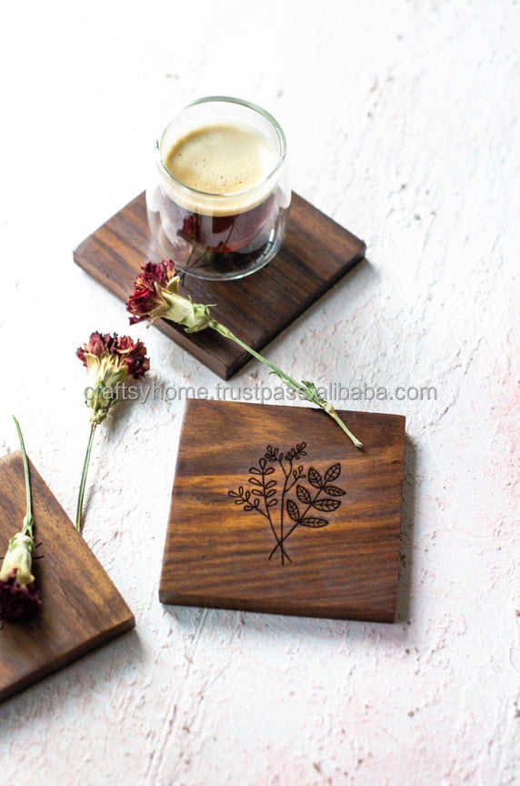 Posavasos de madera de Acacia Natural para interiores, Juego de 4 posavasos de hierro negro, hecho a mano