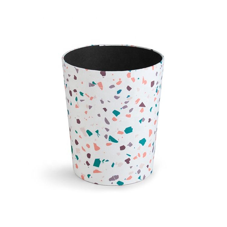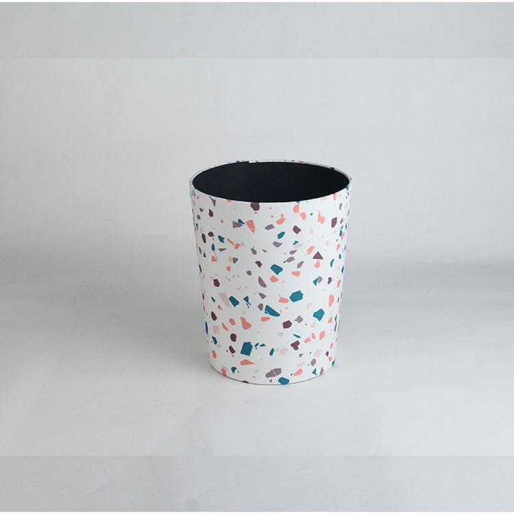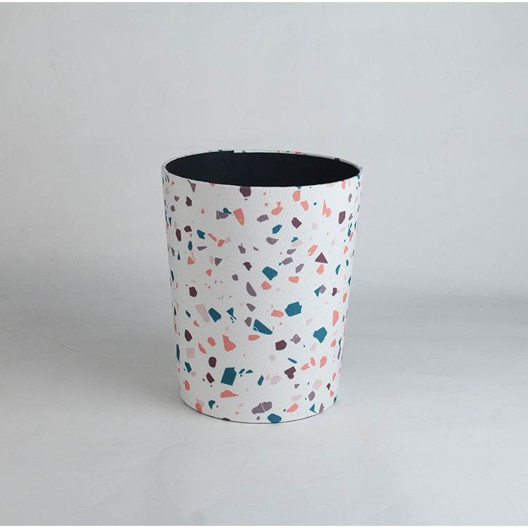 Exquisito estilo terrazo tela cubierta redonda papelera