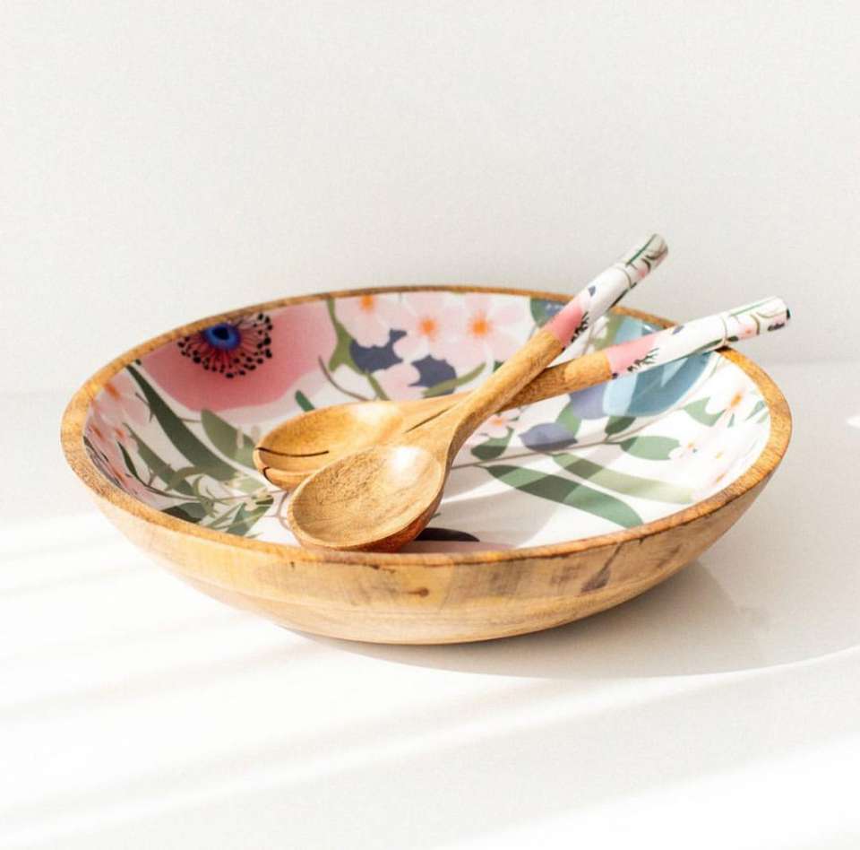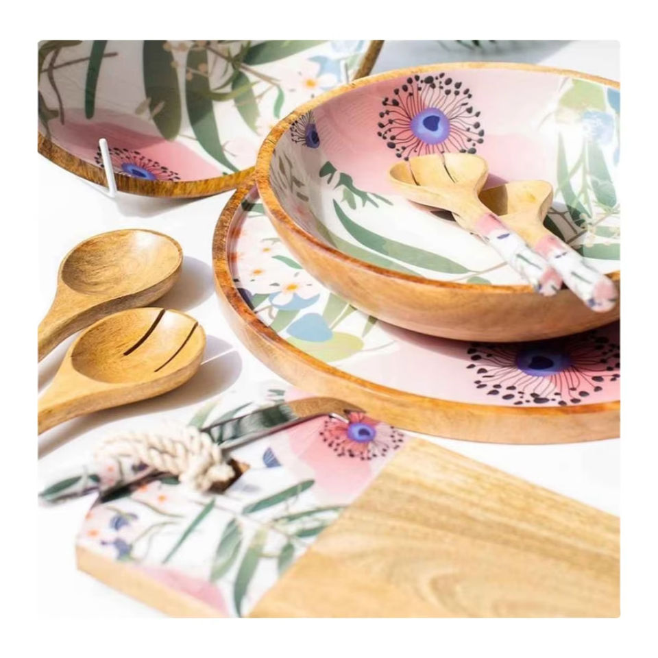 Exquisito juego de utensilios de cocina de esmalte de madera para fiestas con acentos de esmalte vibrante cuencos cucharas cuchillo de queso-Craft Emporium