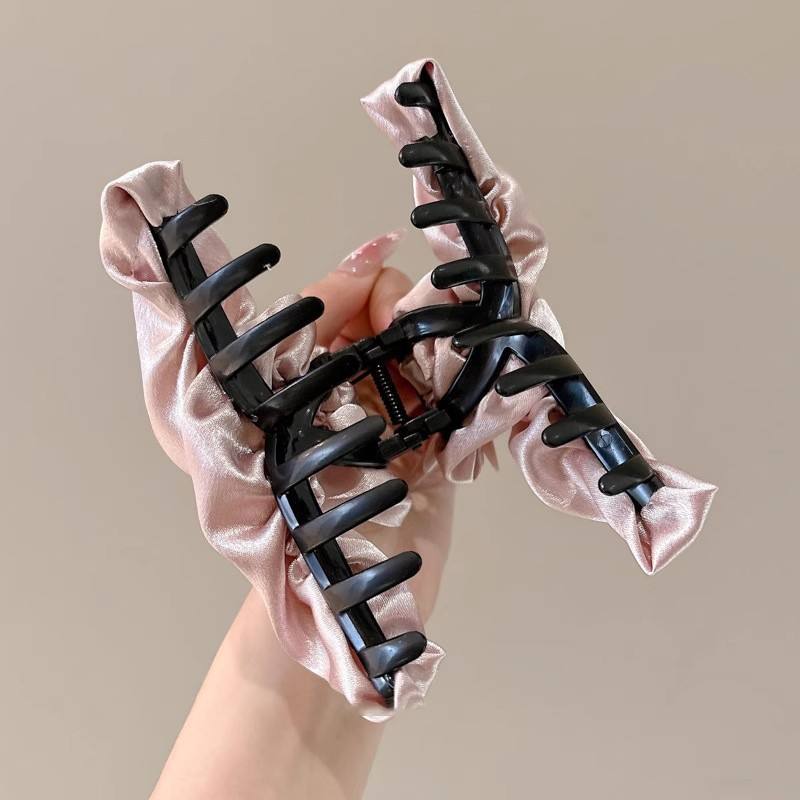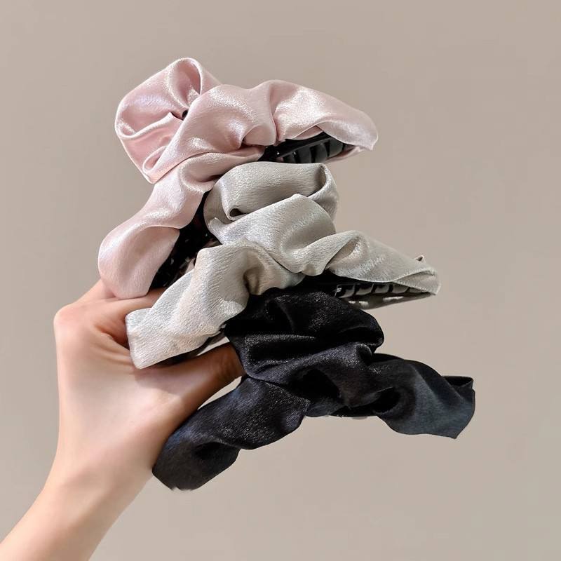 Exquisito clip de tela plisada con brillo de alta gama para primavera y verano, estilo francés, temperamento de influencer, con un toque de alta costura.