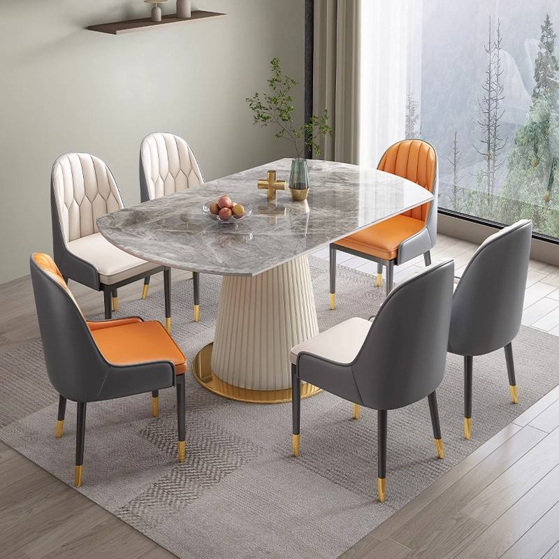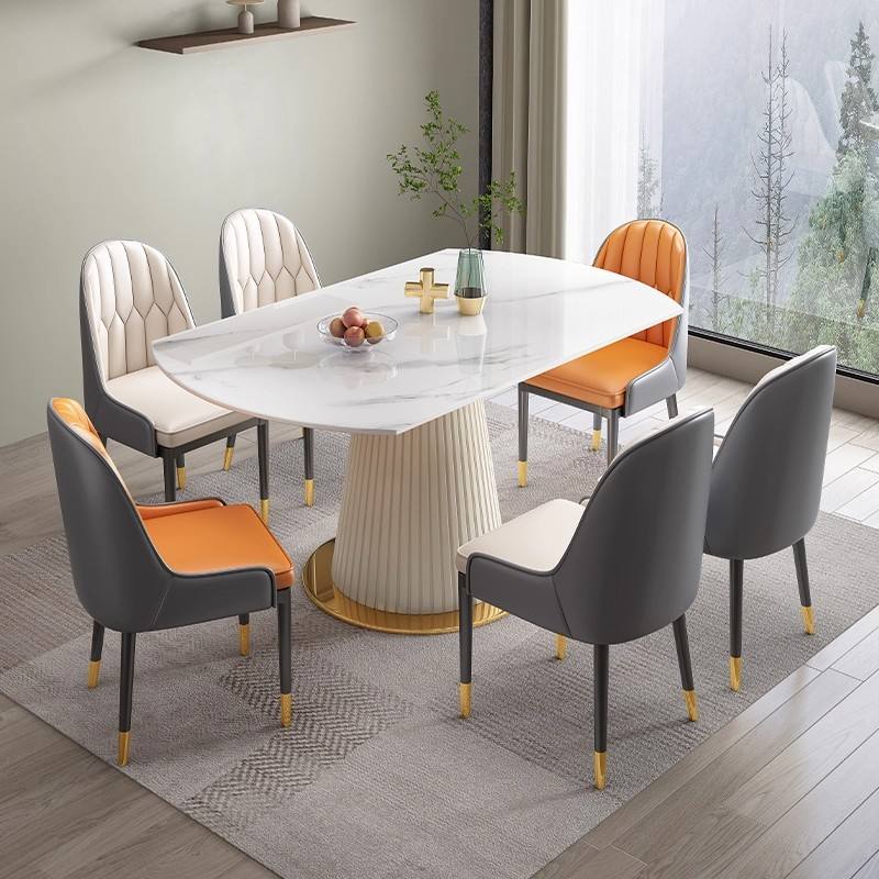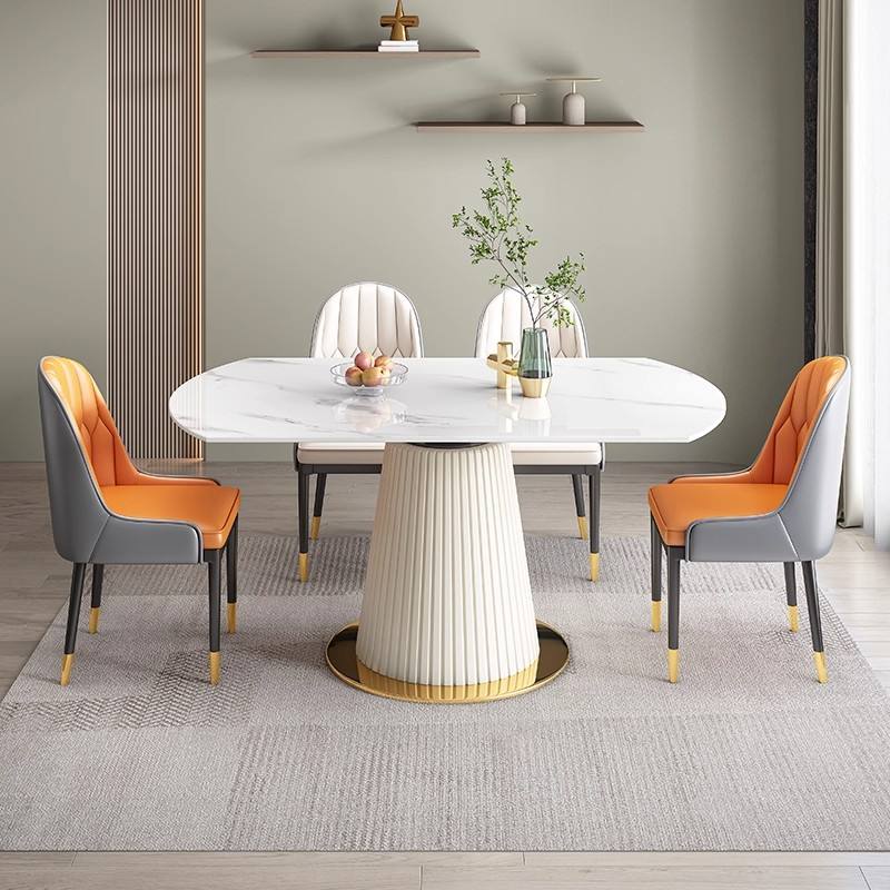 Juego de Mesa de Comedor Redonda Extensible de Piedra Sinterizada con Base Dorada y 6 Sillas 2025