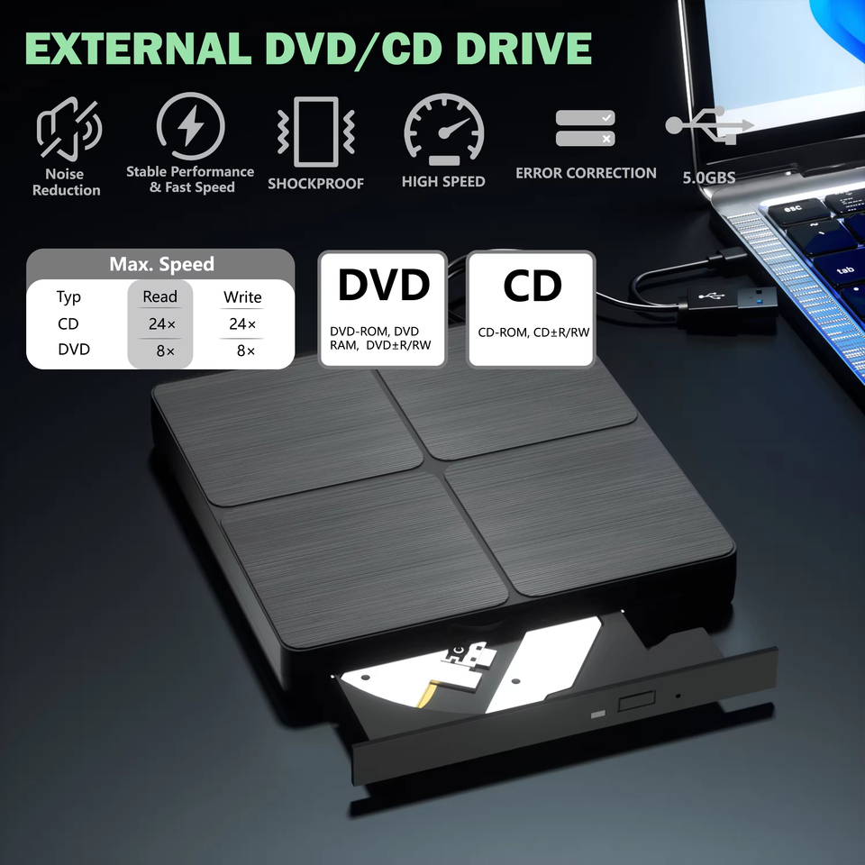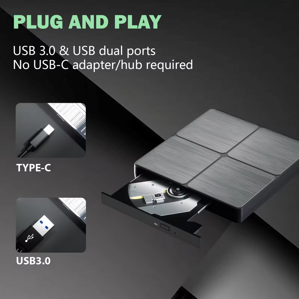 Unidad de DVD Externa USB 3.0 Tipo-C, Grabadora de CD Portátil, Unidad Óptica de CD DVD +/-RW, Grabadora de CD DVD ROM Delgada