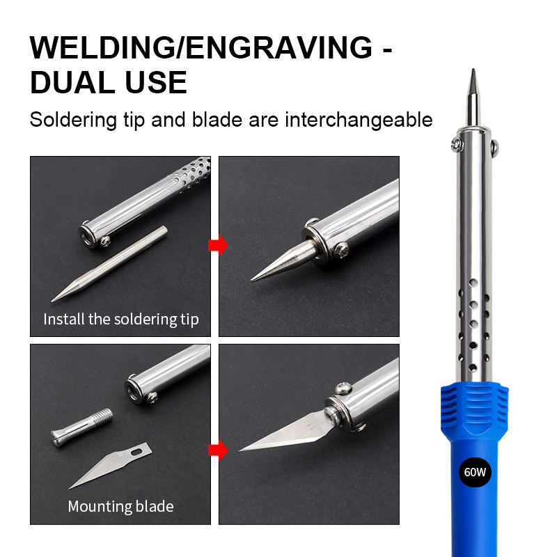 Cuchillo Eléctrico de Grabado Manual de Doble Propósito con Conector Roscable de Acero Inoxidable de 60W para Calentamiento Externo y Soldador