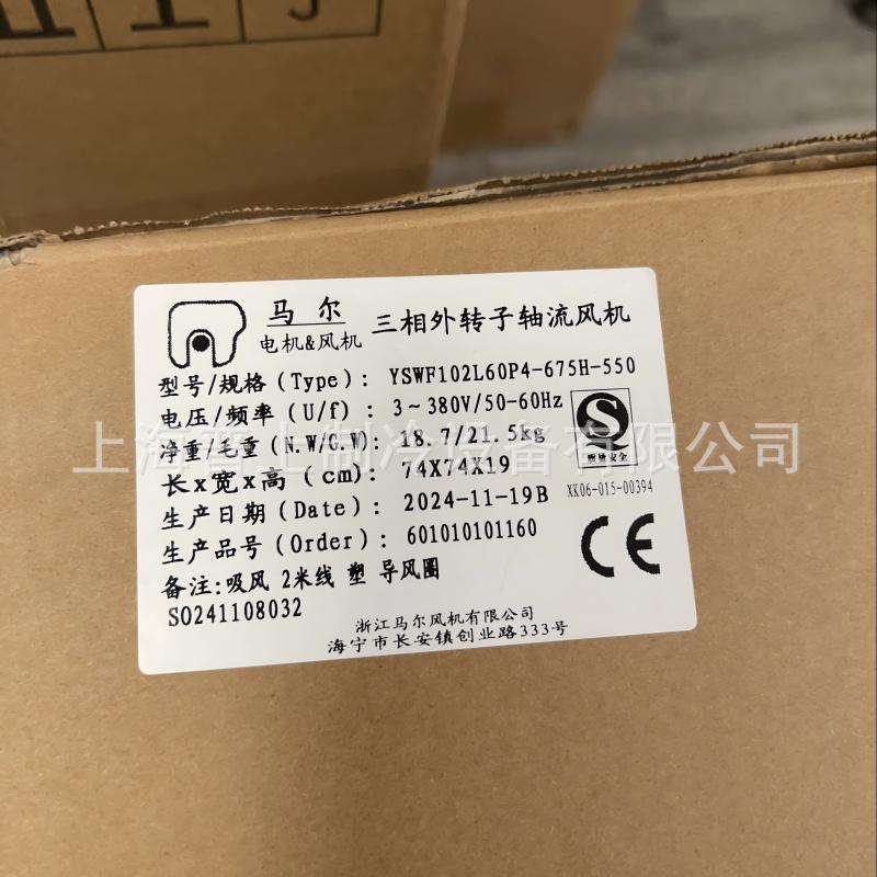 Ventilador Axial de Rotor Externo YSWF102L60P4 675H 550S 24 Pulgadas, Aspas de Aleación de Aluminio, Rodamiento de Bolas, Motor Eléctrico