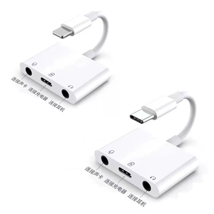 Tarjeta de sonido externa 3 en 1 tipo C A Adaptador de auriculares de 3,5mm