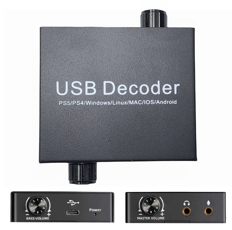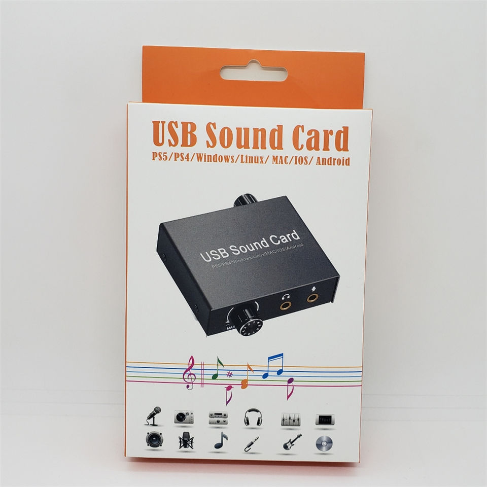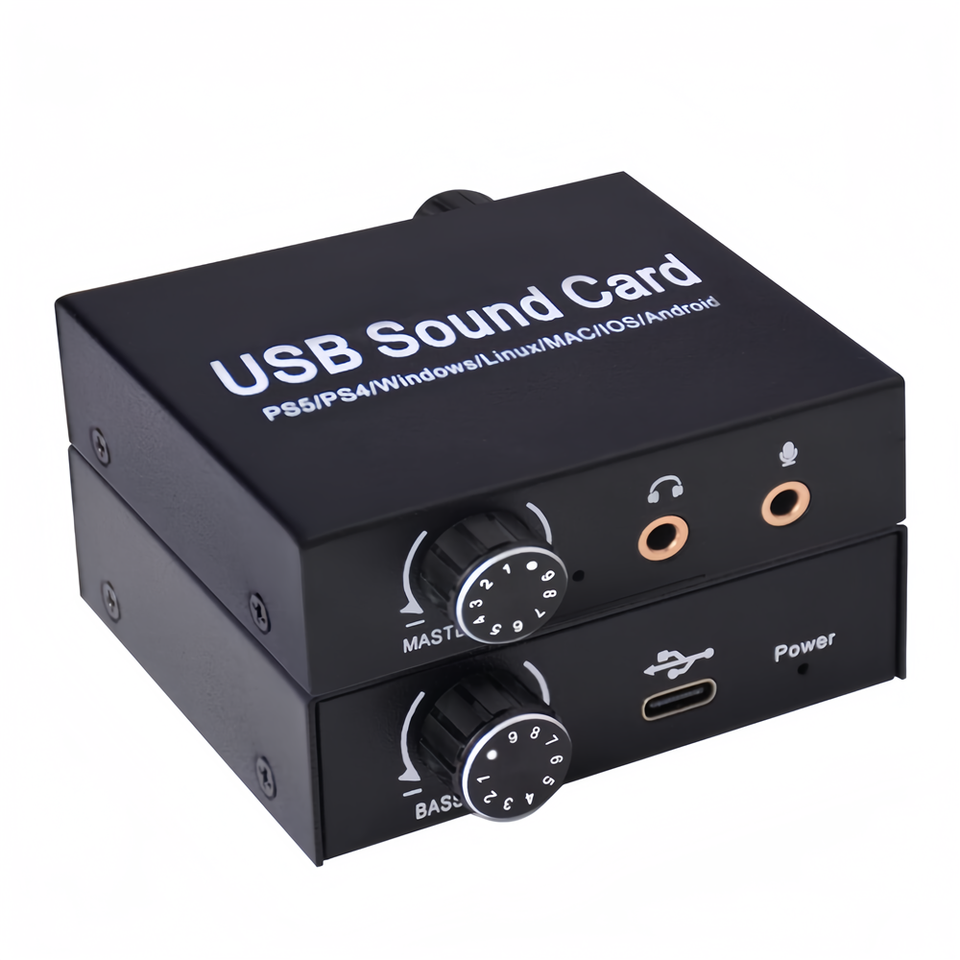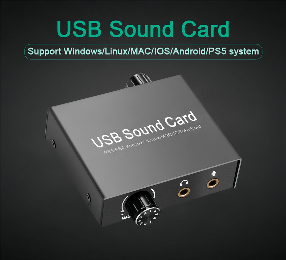 Tarjeta de sonido USB externa con salida de control de volumen y ajuste de perilla de graves Adaptador de audio estéreo con micrófono de 3,5mm para PS4