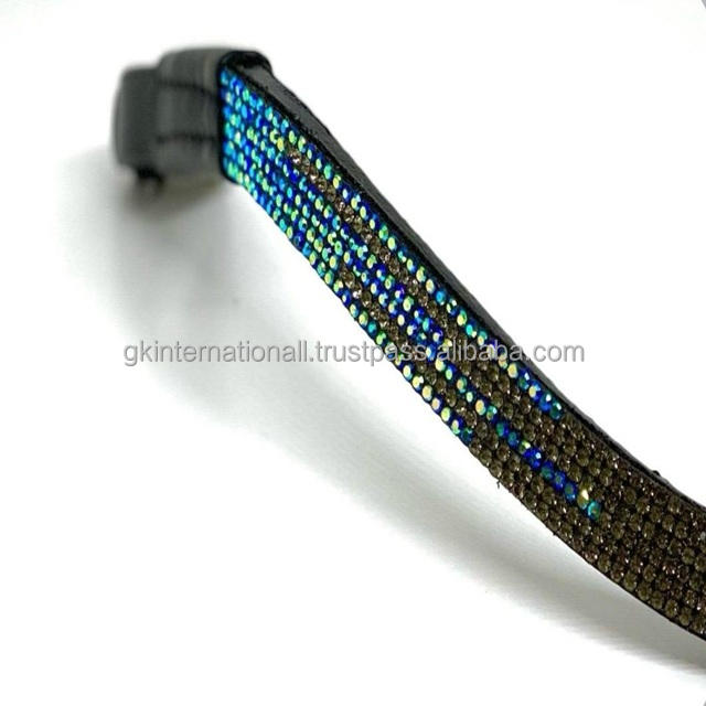 Diadema para caballo de cuero genuino con forma de onda profunda, decorada con cristales y pedrería, acolchada y extra cómoda, para brida.