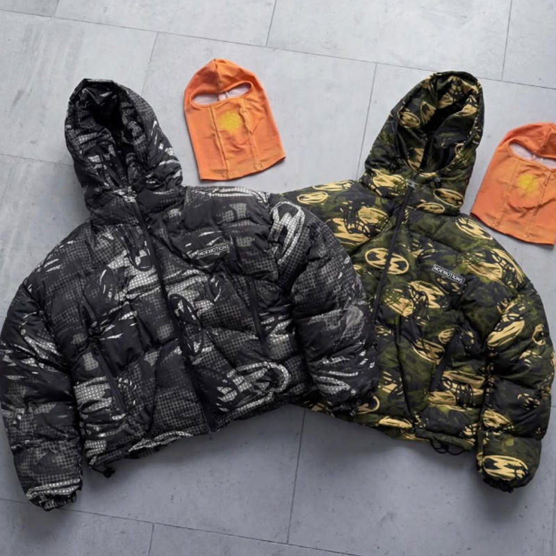 Chaqueta Impermeable de Camuflaje Extra Gruesa con Estampado Digital Completo, Corte Holgado, Hombros Caídos y Cremallera Oculta, Estilo Urbano