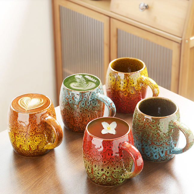 Nombre del producto:Taza de cerámica con esmalte reactivo vintage en forma de barril