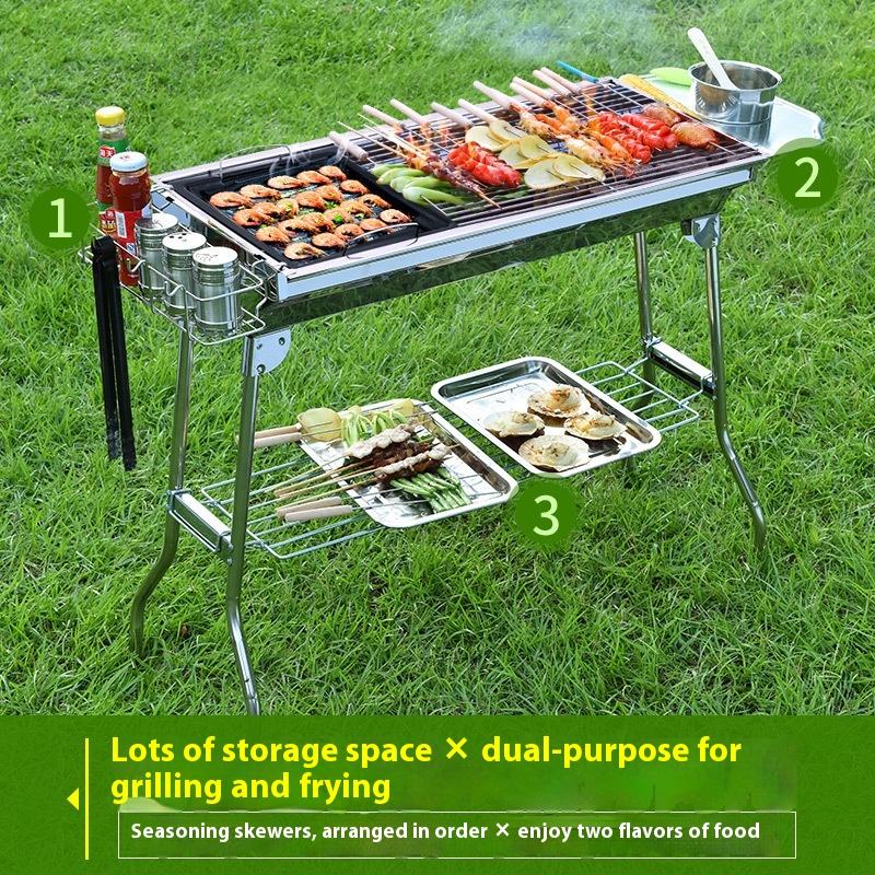 Parrilla y plancha de doble propósito extra grande, barbacoa plegable portátil de alta resistencia Premium para Tailgating y Backyard Camping, combustible de carbón