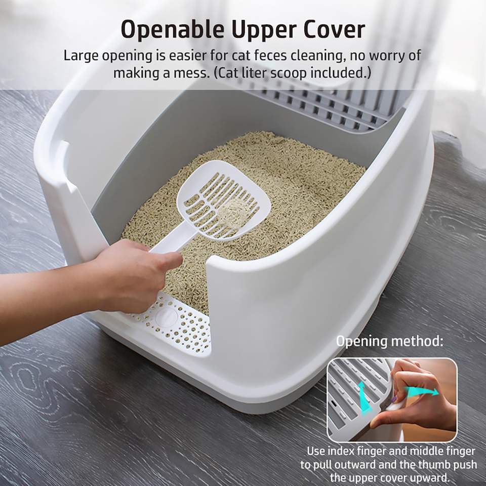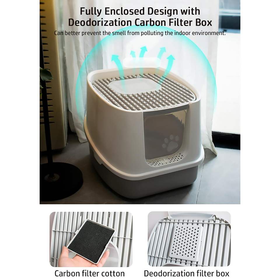 Caja de arena para gatos extra grande con valla alta, totalmente cerrada, antisalpicaduras, tipo cajón, inodoro gigante para gatos, desodorante de arena, hecha de PP duradero