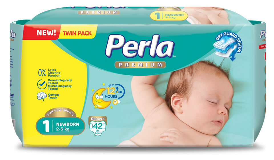 Pañales desechables extra grandes No.6 PERLA para bebés con barrera fuerte y lados elásticos de superabsorción