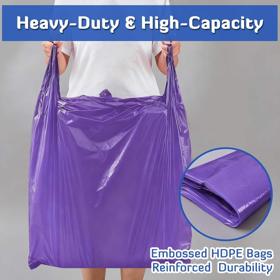 Bolsas de Compras Reutilizables Extra Grandes de Plástico PE Biodegradable Color Morado, Resistentes, con Asas, para Restaurantes y Comercios