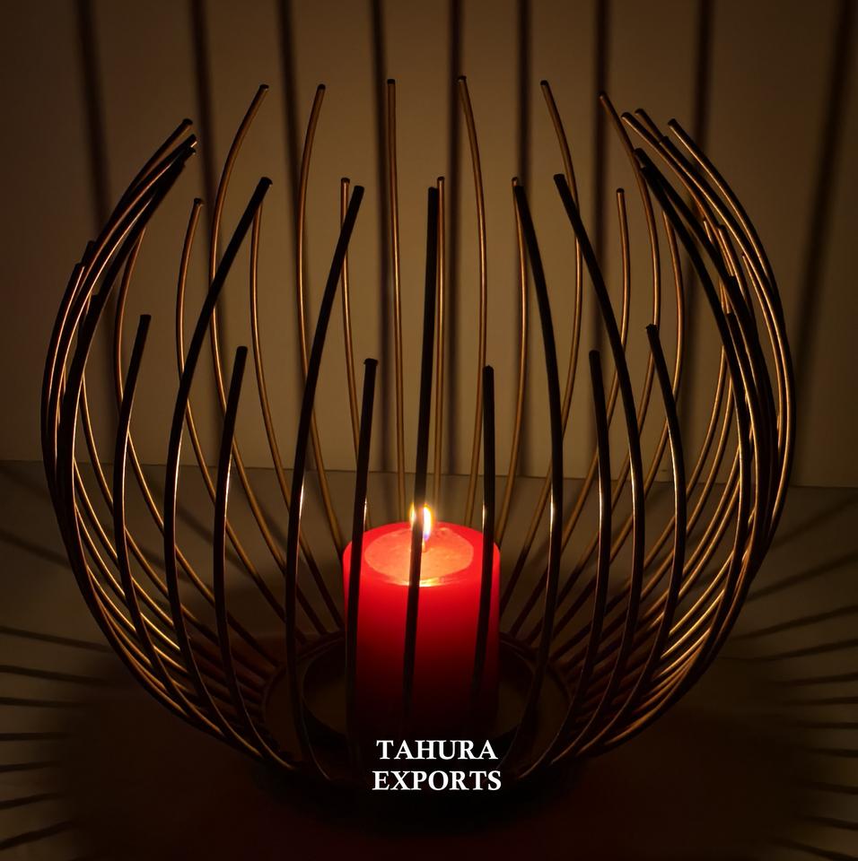 Portavelas Redondo Extra Grande con Diseño de Jaula Abierta, Acabado Elegante y Moderno para Decoración de Estilo Bohemio, Minimalista o Urbano