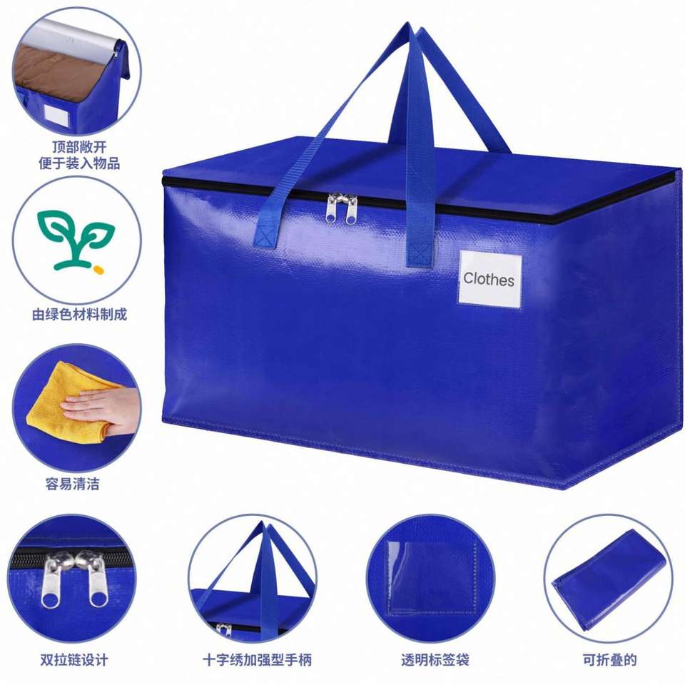 Bolsas de Almacenamiento Extra Grandes y Resistentes de Polipropileno Ecológico (PP/PE) Tejido para Mudanza y Ropa, con Cierres