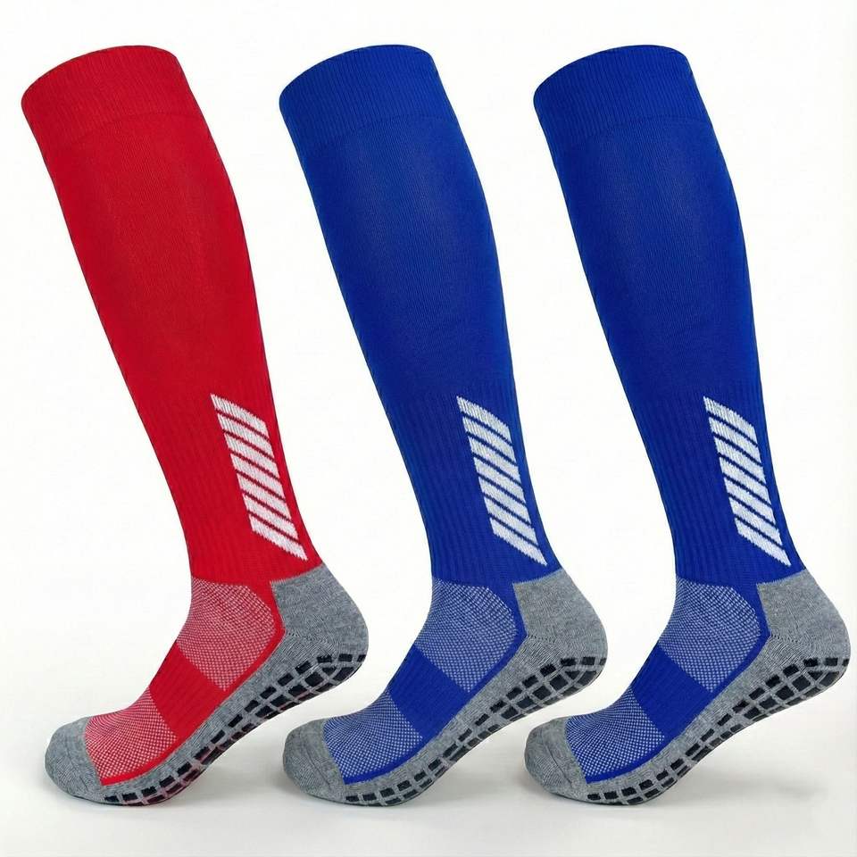 Calcetines de fútbol extra largos hasta la rodilla con diseño a rayas para adultos, uso deportivo