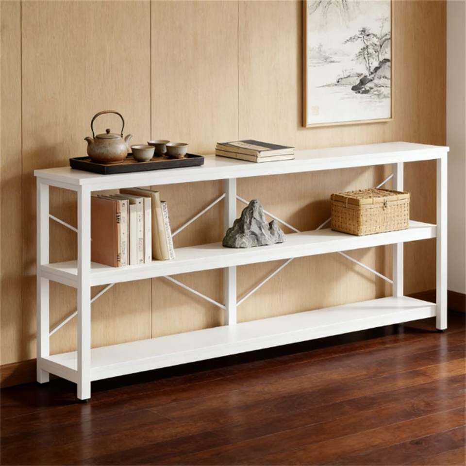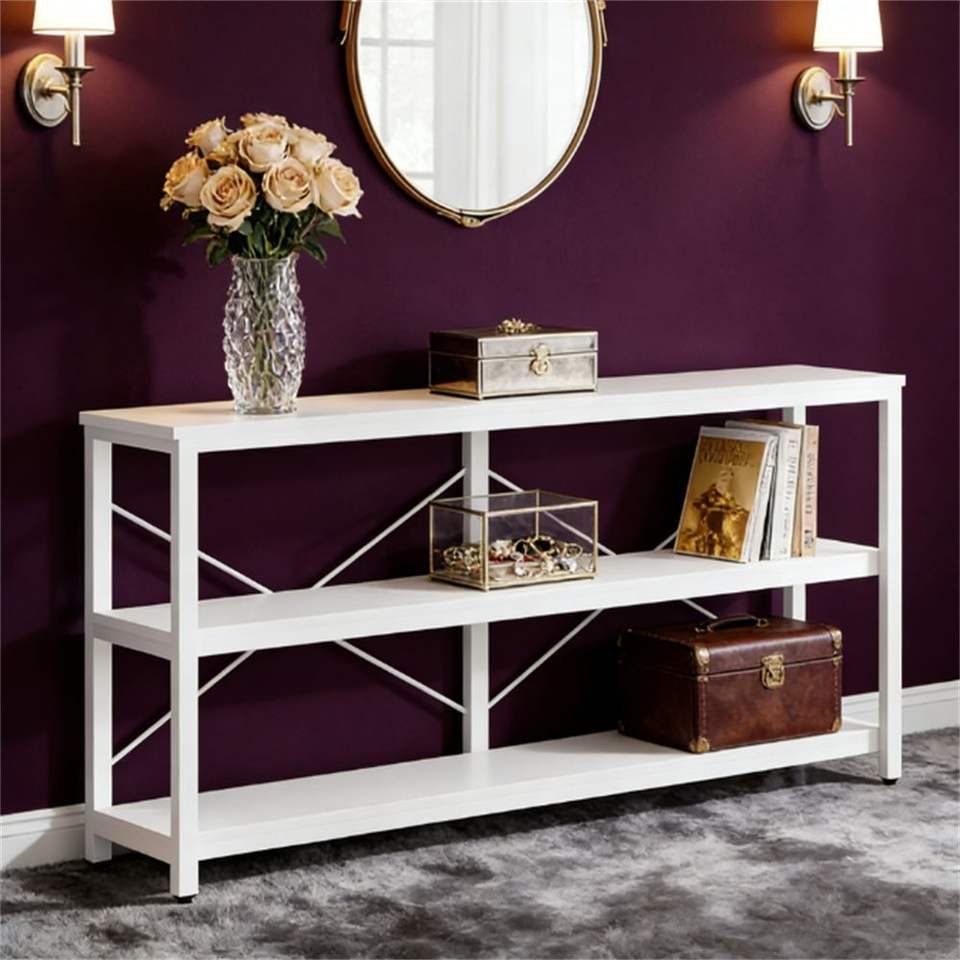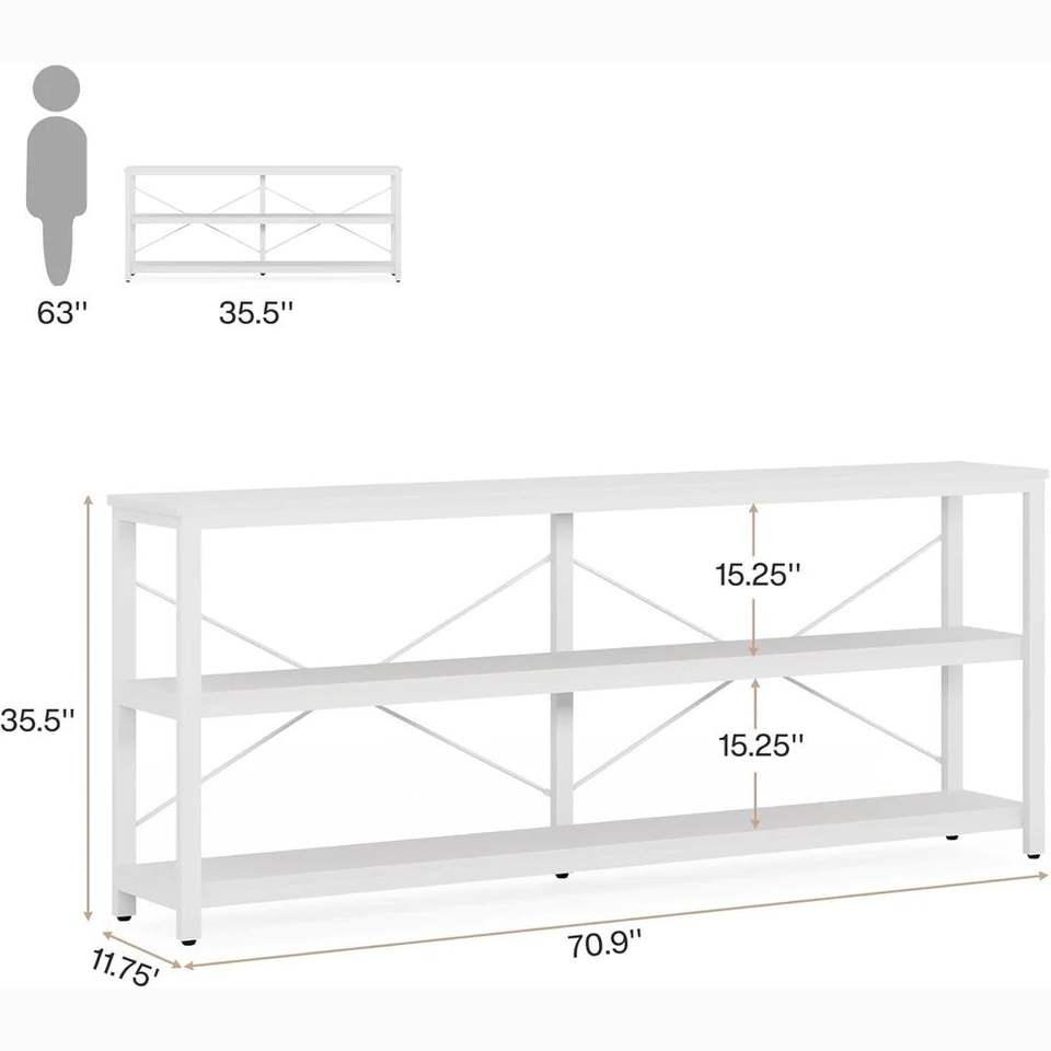 Mesa de Sofá Extra Larga con Espacio de Almacenamiento, Estante Abierto, Mesa Consola, Estante de Exhibición