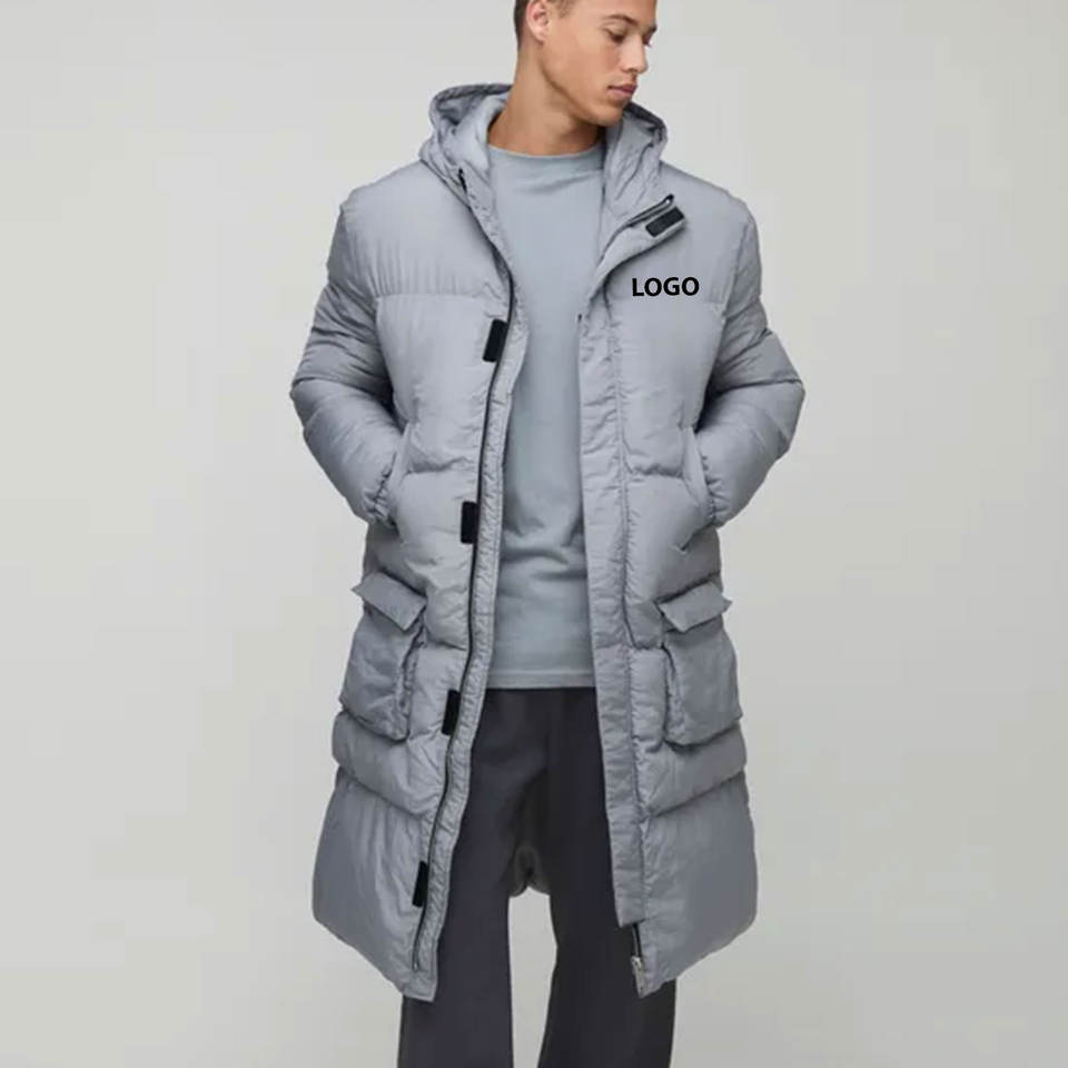 Chaqueta de Invierno Extra Larga, Abrigo Cálido para Exteriores, Chaqueta Acolchada con Burbujas Térmicas Personalizada Unisex con Capucha