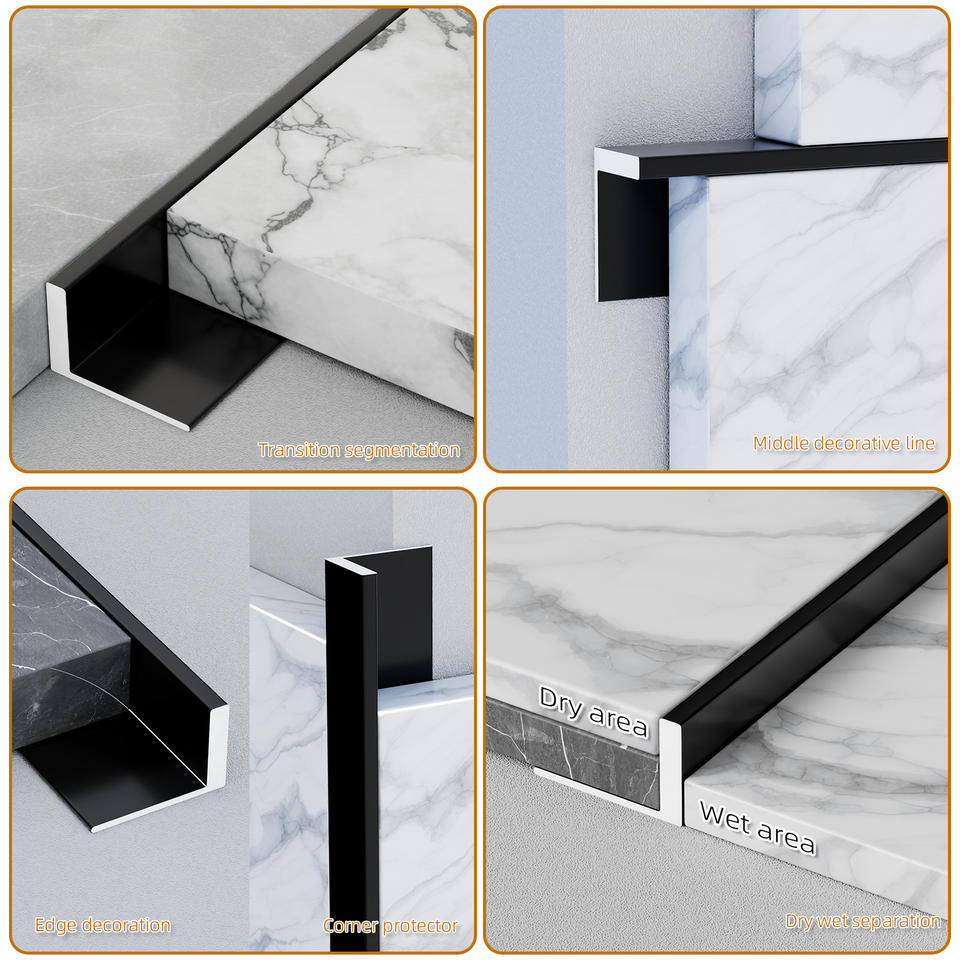 Tira de umbral de puerta en forma de L extra estrecha, transición plana de madera a azulejo/alfombra, accesorios de azulejo Premium