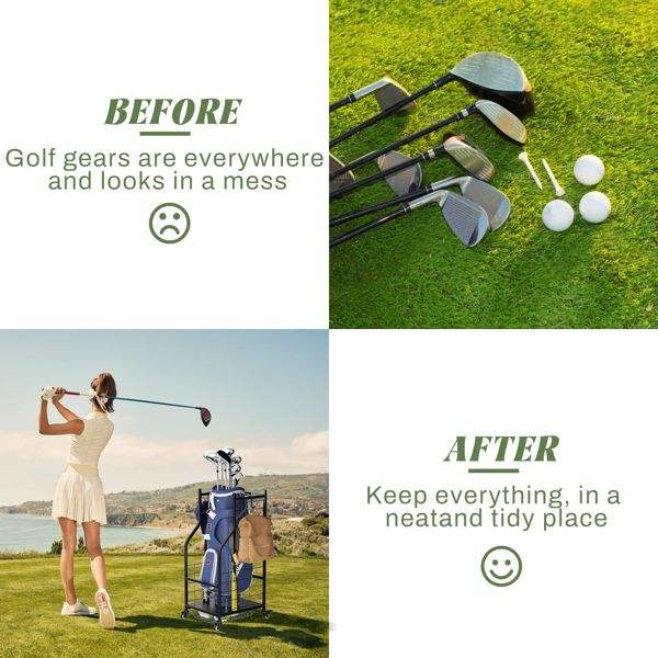 Estante de Almacenamiento Adicional para Palos de Golf, Organizador de Bolsas de Golf y Estante de Garaje para Organización y Almacenamiento en Garajes