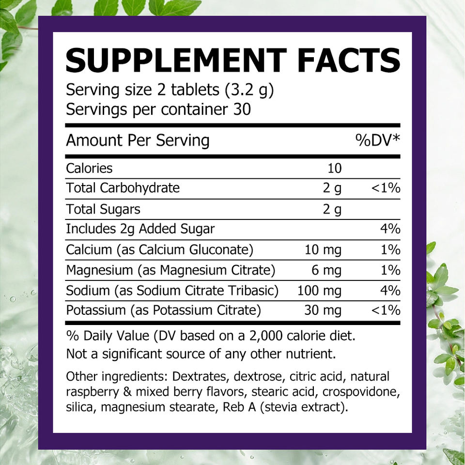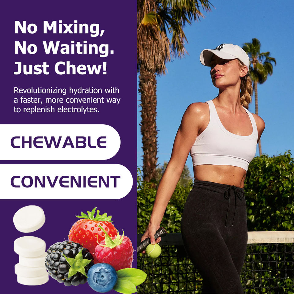 Tabletas de Electrolitos de Alta Potencia para Recuperación, Resistencia y Rendimiento, Sin Gluten, Sabor Natural, Veganas, Masticables y Prácticas