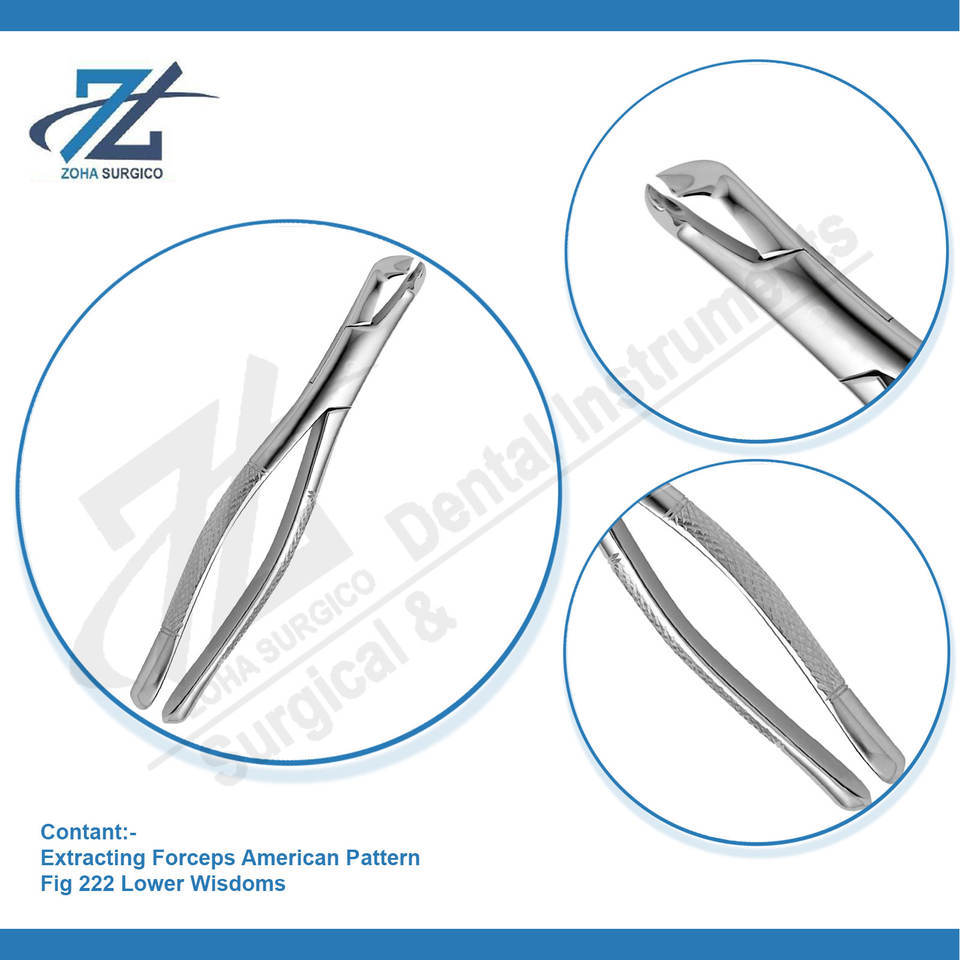 Fórceps de extracción Patrón americano Fig 222 Lower Wisdoms Alemán de alta calidad Starnderd Instrumentos quirúrgicos dentales Pakistán