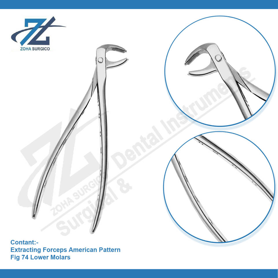 Fórceps de extracción Fig74 Molares inferiores Juego dental de acero inoxidable de alta calidad Premium Fabricante de instrumentos quirúrgicos Pakistán