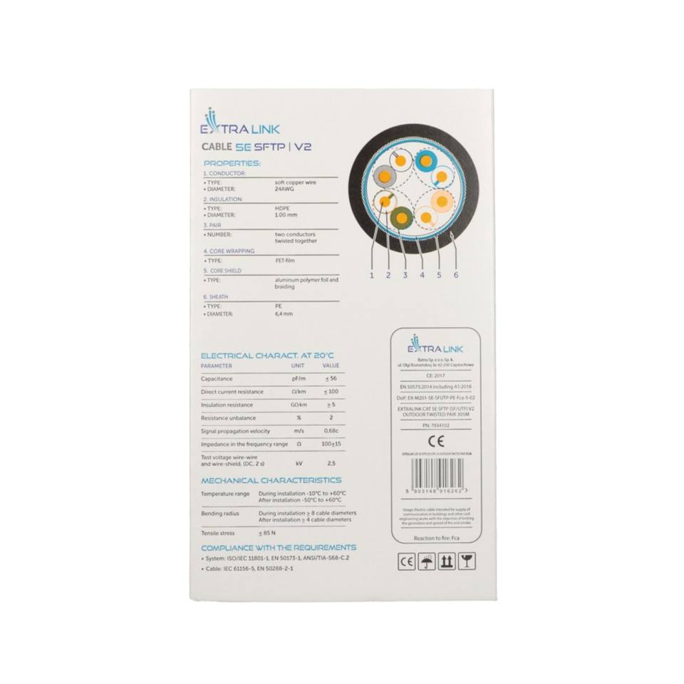 Cable Ethernet para Exteriores Extralink CAT5E SFTP (SF/UTP) V2, 305M