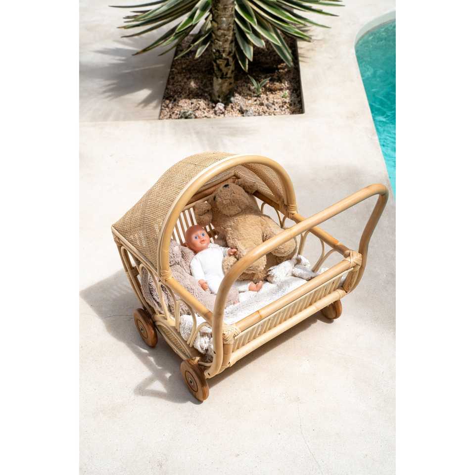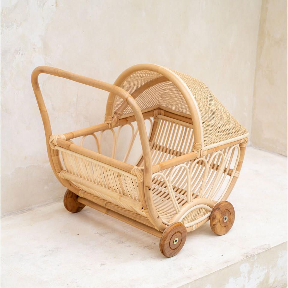 Cochecito de ratán para muñecas