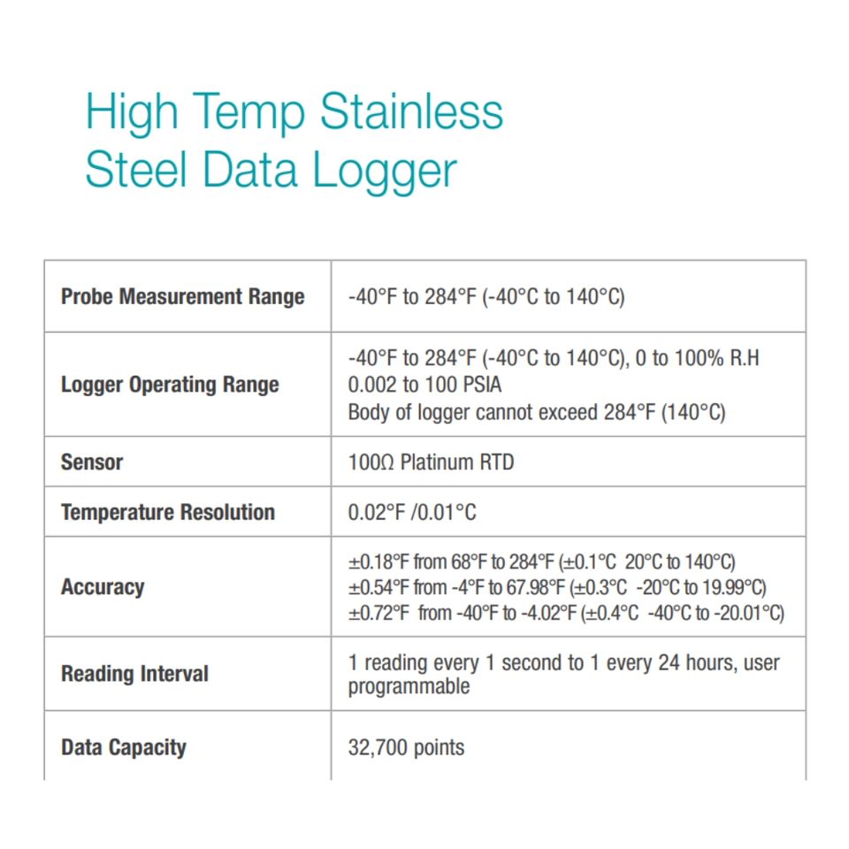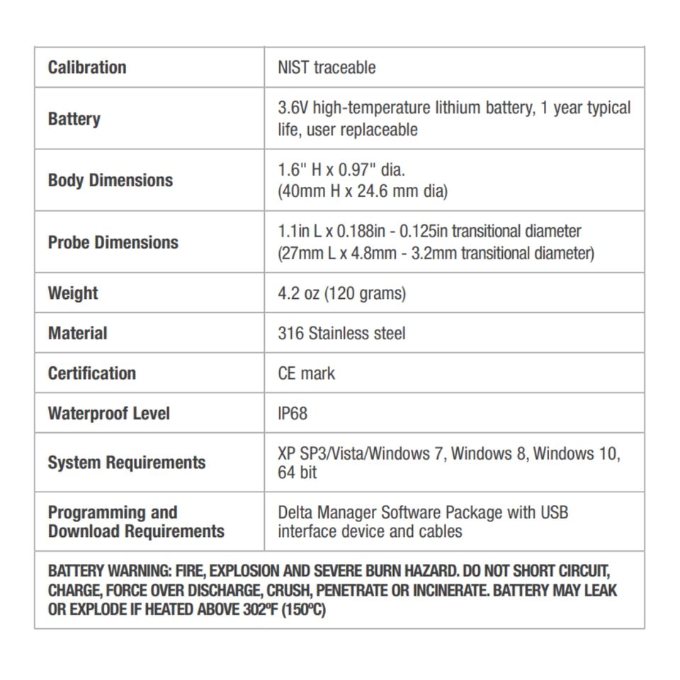 Registrador de datos de acero inoxidable de alta temperatura extrema DELTATRAK Modelo 20629 Fácil de programar para uso industrial