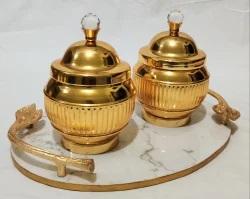 Tazón y bandeja chapados en oro de fruta seca con diseño en relieve de lujo extremo para el hogar, Hotel y regalos, productos decorativos de mesa al por mayor R