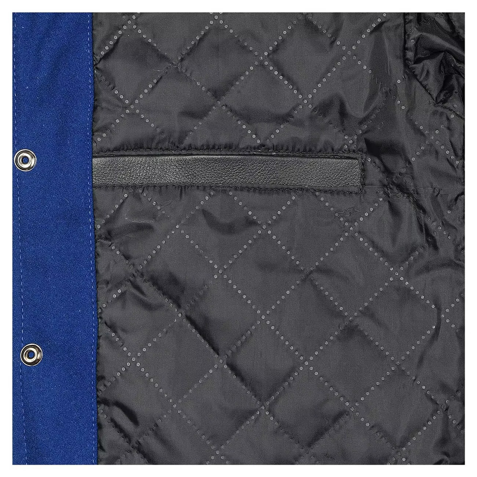 Llamativa chaqueta universitaria azul y roja para personas que marcan tendencia Diseño contemporáneo duradero elegante con mangas de cuero