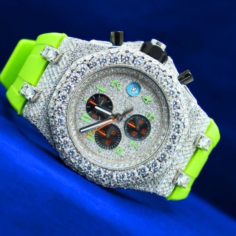 Reloj Cronógrafo Analógico de Diseño Atractivo, Estilo Hip Hop, con Movimiento Miyota, Caja de Acero Inoxidable, Correa de Goma, Claridad VVS Mejorada