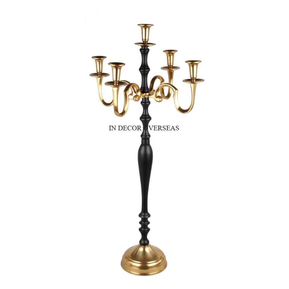 Portavelas de 5 niveles de Metal resistente de diseño elegante chapado en oro de alta calidad con revestimiento en polvo de Color negro